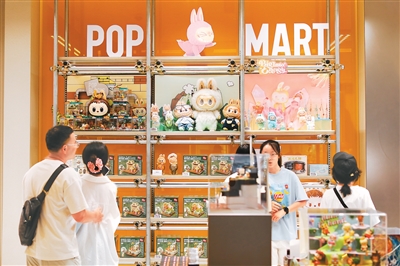 在重庆市渝中区来福士商场的泡泡玛特门店,市民选购相关产品。 孙凯芳摄(人民图片)