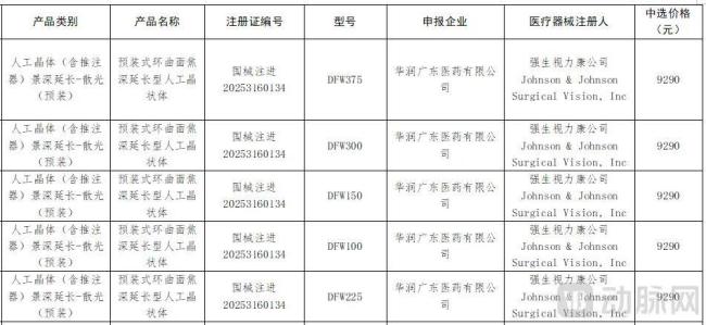 2025年的新产品中,强生视力康的“预装式环曲面焦深延长型人工晶状体”3月获批,5月就申请进入了集采增补产品中(即视为中选产品),仅间隔70多天。公告显示,这款可同时提供近、中、远视力,具有连续视程、可矫正散光的人工晶体中选价为9290元。
