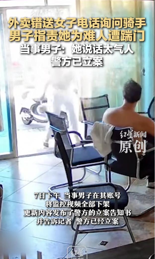 男子指责女子为难骑手后遭威胁 踹门事件引发关注!6日下午,一名男子发布视频称,外卖骑手送错餐被女子打电话指责,男子为骑手“打抱不平”后遭到女子踹门。监控视频显示,女子取到餐后与男子发生口角,并将男子所在店铺的门踹倒,随后男子报警,相关视频引发广泛关注。