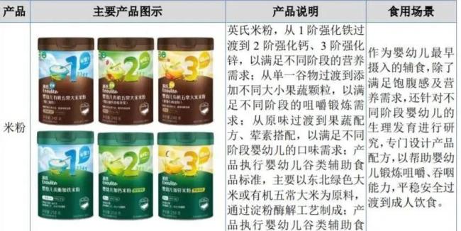 据了解,英氏是一家集婴幼儿辅食、婴幼儿卫生用品、儿童食品和营养食品的研发、生产和销售业务为一体的企业。婴幼儿辅食是公司的核心品类,主要包含“英氏”品牌的米粉、饼干类、面条、佐餐油等细分品类。