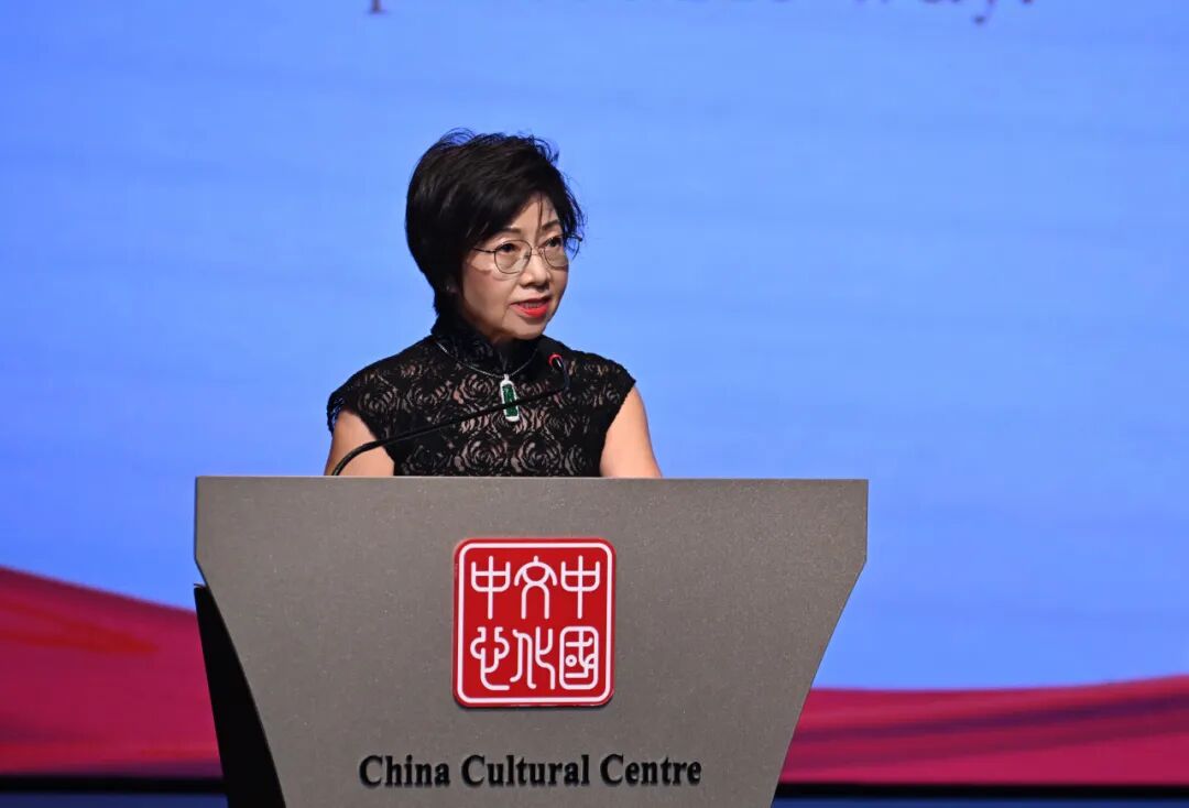 刘心玲在致辞中表示,作为创会理事之一,她亲身参与并见证了中国文化中心从萌芽到茁壮的成长历程。十年间,理事们始终秉持初心,紧密协作,共同努力将中心打造成为一个充满活力、包容开放的文化平台。如今,中心已成为连接新中两国人民情感、增进相互理解、深化友谊的重要纽带,为促进两国民心相通、文明互鉴发挥着不可替代的作用,期待中国文化中心再接再厉,为两国交流注入新的活力。