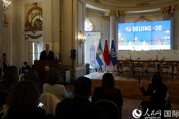 人民网布宜诺斯艾利斯9月9日电(记者许放)当地时间9月8日,中国驻阿根廷大使馆与联合国妇女署驻阿代表处联合举办北京世界妇女大会30周年纪念活动。中国驻阿根廷大使王卫、联合国妇女署驻阿代表福尔塔多、布宜诺斯艾利斯市议员巴雷托、数十名曾参加北京世妇会的阿方代表及阿社会各界人士等200余人出席。