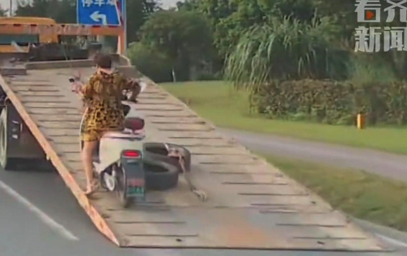 9月13日四川,一女子单手低头骑电动车,没注意前方有辆拖车。等她抬头时已经来不及,直接冲上拖车。网友调侃这是现实版侠盗飞车,还有人打趣“拖车:公主请上车”。目前没看到后续消息,大概率是虚惊一场,人没啥大事。估计是她骑车溜号、分心了,现在不少人骑车就爱摆弄手机或者想别的事儿,路上车况复杂,稍不留神就容易出意外。这事儿也给大家提个醒,骑车可得长点心,稳稳当当的比啥都强。