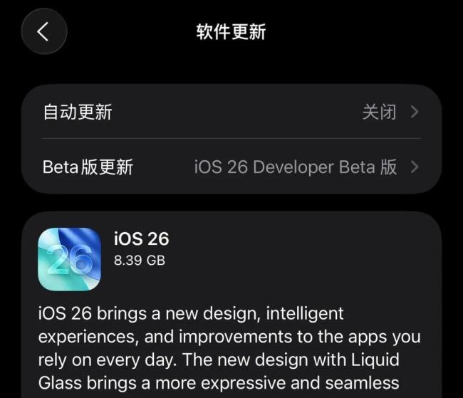 在9月10日凌晨,苹果发布了iOS 26的RC版,版本号为23A340,更新包大小约为8.39 GB,不同机型会略有差异。