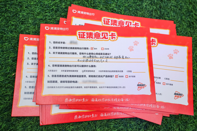 图为:用户在活动现场填写了宠物出行意见卡