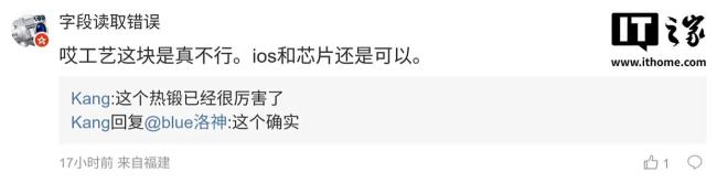 有用户在评论区表示,苹果在工艺方面存在不足,但 iOS 和芯片表现依然出色。博主回应称,热锻工艺已经非常先进。另一名用户对没有黑色版本感到惊讶,博主则表示这种反应很正常。