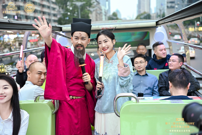 在世界制造业大会场外,古井贡酒于9月20日特别开展系列活动——2025世界制造业大会“年份原浆轻度古20·遇见合肥”品鉴之夜,邀请消费者乘坐「双层巴士」夜游城市地标,沉浸式体验「城市文化」+「创新调酒」的年轻化场景。