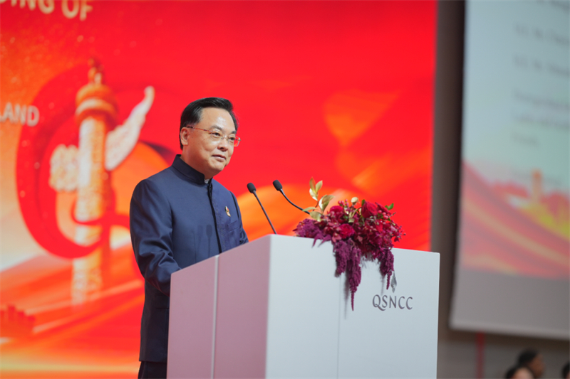 张建卫表示,今年是中泰建交50周年暨“中泰友谊金色50年”。当前中泰关系正处于历史最好时期,两国高层交往更加密切,互利合作持续深入,人文交流更趋活跃,多边协作更富成效。中方始终把发展中泰关系作为周边外交优先方向,始终做泰方可信赖、可倚重的伙伴。中方愿同泰国各界一道,积极推动中泰命运共同体建设进一步走深走实,共同谱写中泰关系下一个五十年的辉煌篇章。