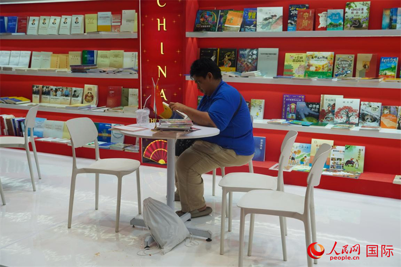 印尼读者在中国展台阅读中国书籍。人民网记者 曹师韵摄