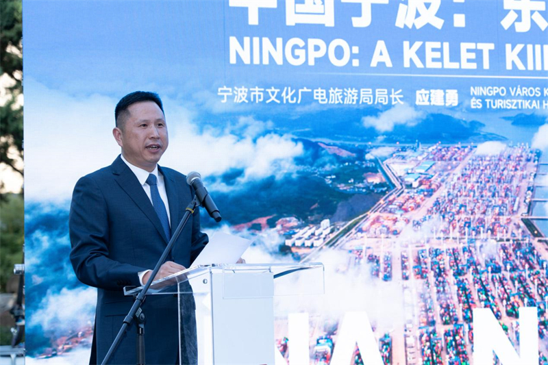 宁波市文化广电旅游局局长应建勇致辞。布达佩斯中国文化中心供图