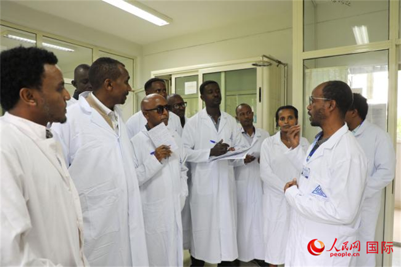 当记者在检测中心采访时,正好碰上了一次项目培训,培训人员来自埃塞俄比亚国内各省和地区。现场培训氛围非常好,讲师和学员之间充满了问答和高度参与的互动,学员们把讲师围了个里三层外三层,积极地提问。