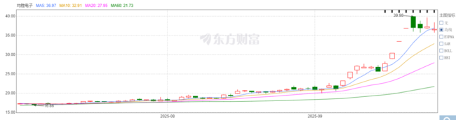三季度以来,均胜电子股价已从7月不到17元/股的低点暴涨至接近40元/股,成功翻倍。