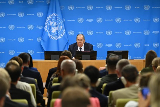 9月27日,在位于纽约的联合国总部,俄罗斯外长拉夫罗夫在联大一般性辩论发言后举行的记者会上讲话。新华社记者李睿摄