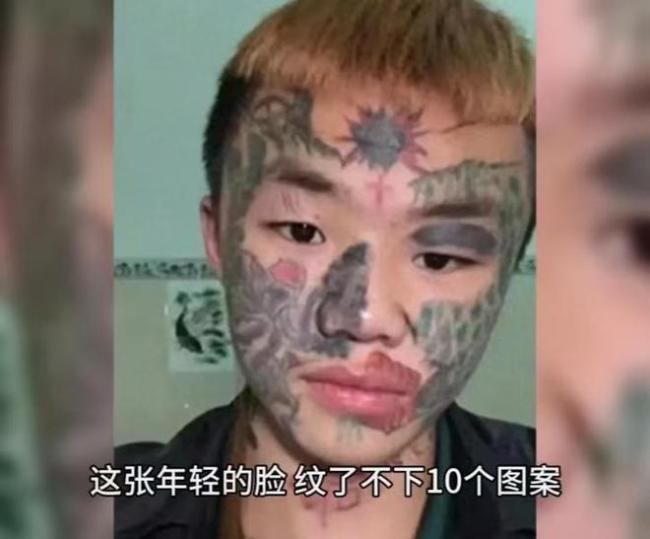谁能想到,这个现在盼着“脸干净”的小伙子,9岁就开始了他的第一个纹身。那时父母离婚后,父亲再婚,继母对他不好,经常挨打甚至被鞭子抽过,还曾被拴在摩托车上在地上拖拉,脊背上全是血。为了逃离这个暴力的家庭,他离家出走,捡垃圾、睡桥洞,并结识了一些所谓的“大哥”。看到大哥们身上的纹身觉得很酷,以为这样能让别人怕自己,不会被欺负,于是开始纹身。身上纹满了之后,又在脸上纹,般若、鱼鳞全安排,连额头都有太阳和眼睛的纹样。这些纹身反倒成了“精神小伙”的标志,还靠这张脸在短视频平台火了一阵,粉丝一度涨到一百多万,带货赚的钱让他风光了一把。