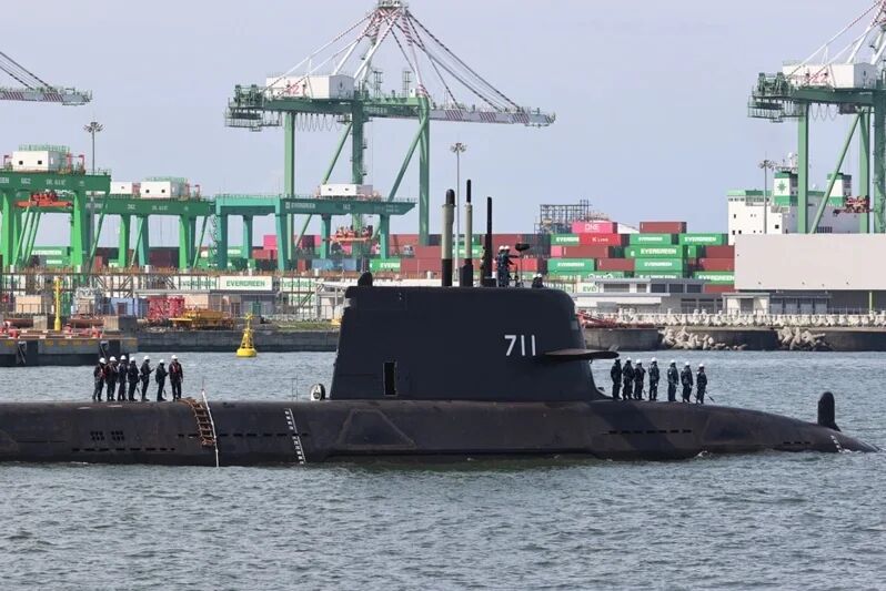 正因现役潜艇老旧落后,几次试图从海外引进潜艇也“求购无门”,台海军决定自行建造。2017年,台当局与台船和“中科院”签约启动造舰计划,以天价预算建造八艘排水量2500吨级的常规柴电潜艇。2023年9月28日,“海鲲”号下水并命名。