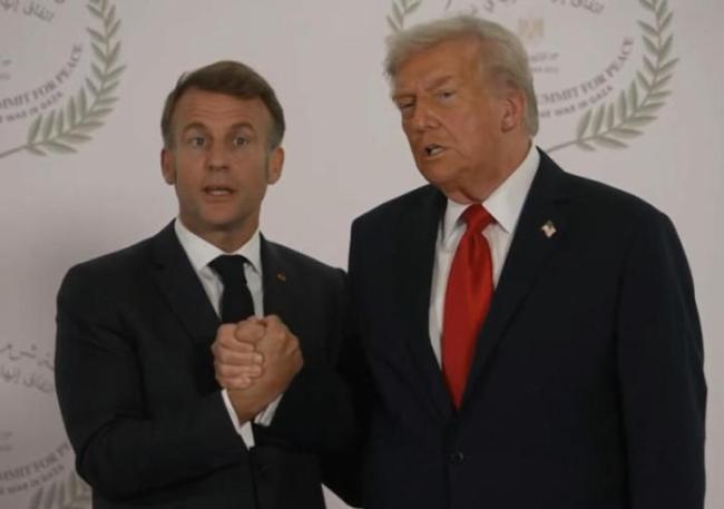 美国总统特朗普与法国总统马克龙于10月13日在埃及会面。会面期间,特朗普用力握住马克龙的手,两人互相拉扯手臂并多次变换握法,整个握手过程持续了26秒。英国《独立报》形容这次握手为“掰腕式握手”,并称特朗普“锁死”了马克龙26秒。握手结束后,马克龙转身时似乎松了一口气。