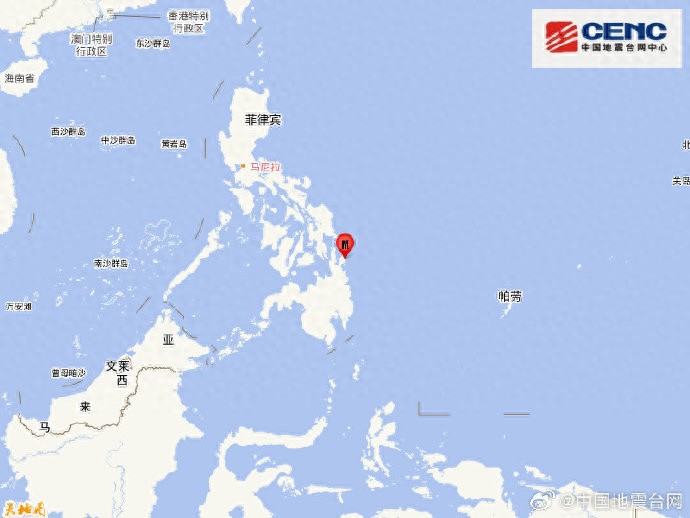 10月17日消息,中国地震台网正式测定:10月17日07时03分在菲律宾群岛地区(北纬9.85度,东经126.25度)发生6.0级地震,震源深度20千米。