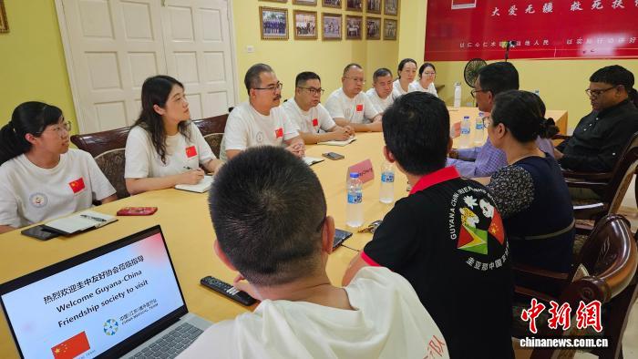 中新网圭亚那10月23日电 (李妍雨 彭森)圭中友好协会会长保罗(Paul)、圭亚那NCN电视台台长塞缪尔·苏克南丹(Samuel Sukhnandan)一行日前在圭亚那拜会第21批中国(江苏)援圭亚那医疗队并举行座谈,就未来一年的医疗协同与社区公益活动达成合作共识。