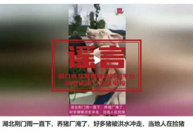 10月25日,有消息称湖北荆门某地因连续下雨导致养猪场被淹,并出现了当地人捡猪的视频。经核查,这些信息为谣言。