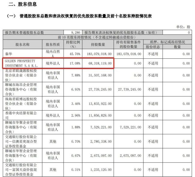 据6月13日公告,公司股东Golden Prosperity Investment S.A.R.L.通过询价转让方式减持1200万股,转让价格为90元/股,交易总金额达到10.8亿元。