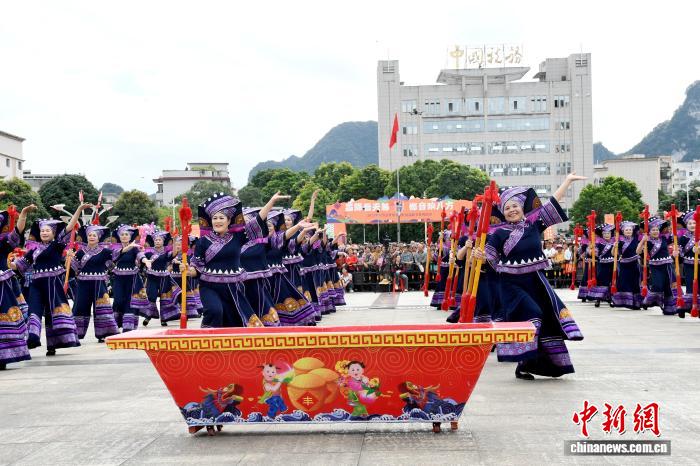 图为崇左市天等县霜降节打榔舞活动现场。崇左市民族宗教事务委员会 供图