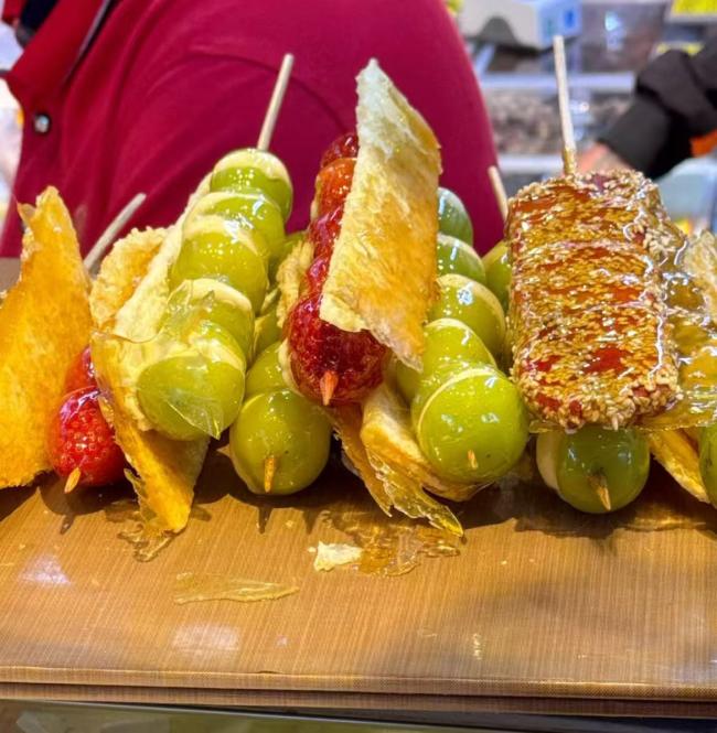 奶皮子糖葫芦在传统糖葫芦的基础上叠加了一层或两层奶皮子,醇厚的奶香与山楂等水果的清甜相结合,带来了独特的口感体验。这种新品类迅速成为各大糖葫芦店的引流利器,从北京到上海再到深圳,奶皮子糖葫芦所到之处都掀起了排队热潮。例如,上海一家名为“野栗乡”的新店因为售卖奶皮子糖葫芦而大受欢迎,即使在工作日中午,顾客也需要排队一个小时。深圳的一些门店甚至因为订单过多而暂停接单。