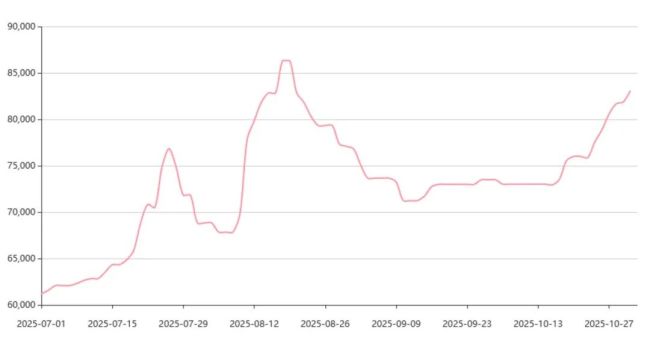 现货价格基本复制期货走势。上海钢联数据显示,8月19日电池级碳酸锂均价86500元/吨,较6月30日打的61400元/吨上涨了40.88%;之后也是快速回落-企稳-再度反弹,10月31日均价83600元/吨。