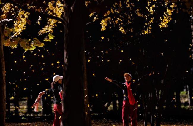 11月9日,北京古塔公园秋色斑斓。岸边金黄色的垂柳与水中倒映相映成趣,秋风拂过银杏林,黄叶簌簌飘落。小朋友们穿梭在林间捡拾树叶,在银杏林中肆意奔跑,享受秋日野趣。漫天飞舞的树叶织就了一场浪漫的“落叶雨”。