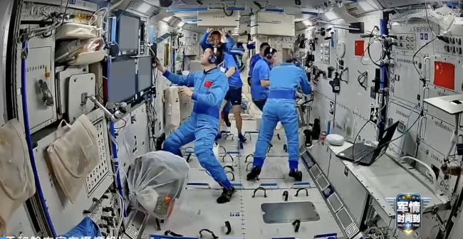 神20神21乘组同框画面 六人共轨实验