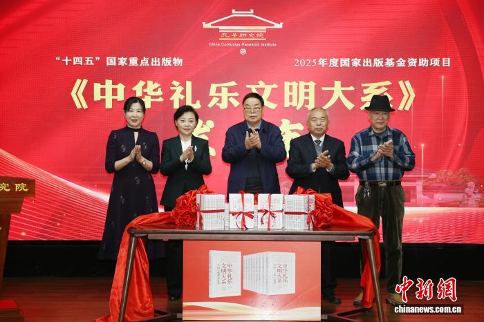 中新网山东曲阜11月28日电 (李明芮)“孔子研究院加强学术建设推进高质量发展会议”11月28日在山东曲阜召开。会上,《中华礼乐文明大系》丛书正式发布。该套通俗学术理论丛书共10部专著,涵盖《中国“三礼”述要》《中国文庙释奠礼》《中国传统成人礼》等,系统构建中华礼乐文明的阐释体系。