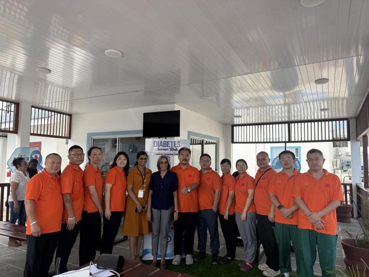 援圭亚那中国医疗队队员与当地卫生人员合影。第21批援圭亚那中国医疗队供图