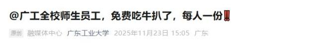 高校为了给学生提供更好的生活体验,纷纷推出了各种美食活动。广东工业大学因喜讯连连,决定请全校6万名师生吃牛扒。这不是该校第一次给学生加餐,2023年6月,学校篮球队在全国大学生篮球联赛总决赛中勇夺冠军时,也曾宴请全校师生吃鸡腿。