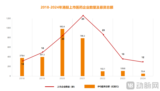 (2018-2024年港股上市医药企业数量及募资总额)