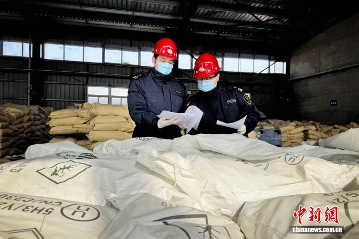 海关工作人员对出口的危险化学品进行查验。银川海关供图