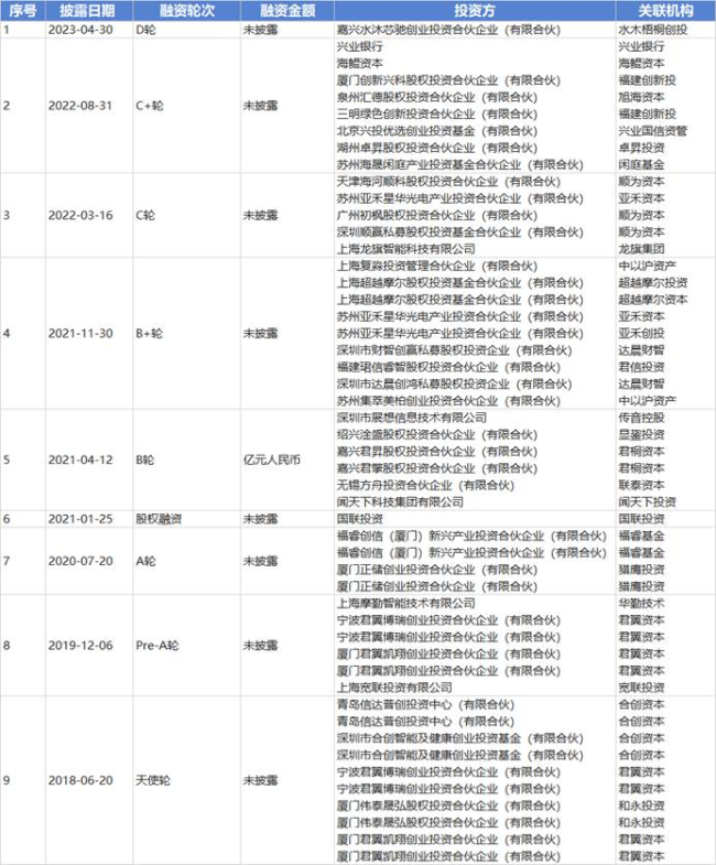 此外,根据天眼查数据披露信息显示,从2018年至2023年公司先后经历天使轮到D轮多轮融资,投资方包括达晨财智、合创资本、君联资本、高瓴创投、红杉中国、深创投、以及小米创始人雷军控制的顺为资本,国家集成电路产业投资基金旗下的超越摩尔基金等顶级财务投资机构。初步预计上市前融资总额高达6.71亿元人民币。在最后D轮最新融资中公司的投后估值约为27.75亿人民币。