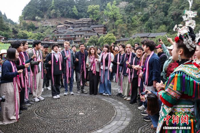 中新网贵州肇兴3月24日电 (记者 杨茜)“音乐拥有将人们凝聚在一起的力量,我们来到肇兴侗寨,就是最好的证明,音乐拉近了我们彼此之间的距离。”合唱团成员昆西(Quincy Rosenzweig)说。