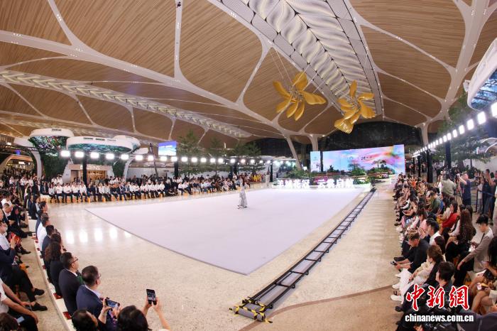 中新网广州3月27日电 (记者 郭军)3月26日晚,一场名为“羊城花冠云裳启航”时尚大秀在广州新地标白云机场T3航站楼精彩上演,吸引众多南来北往的旅客驻足欣赏。