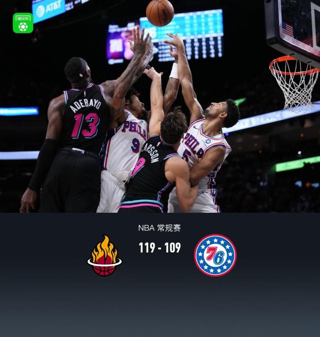北京时间3月31日NBA常规赛,迈阿密热火对阵费城76人。比赛结束时,热火以119-109战胜76人。希罗为热火贡献了30分4篮板3助攻,阿德巴约则有23分16篮板6助攻的表现;76人方面,恩比德得到26分7篮板3助攻,马克西贡献23分7篮板9助攻。
