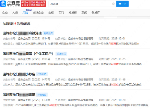 AI巡查发现老鼠痕迹餐饮店被罚 涉事门店被责令改正