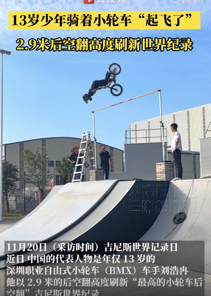 13岁少年骑着小轮车“起飞了” 挑战吉尼斯世界纪录
