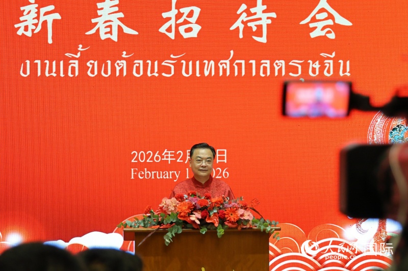 人民网曼谷2月12日电(记者章念生、白元琪)2月11日,中国驻泰国使馆在曼谷举行2026年“温暖迎春共庆中国年”新春招待会。泰国总理阿努廷及夫人、在泰华侨华人、中资机构人员、留学生代表等700余人出席