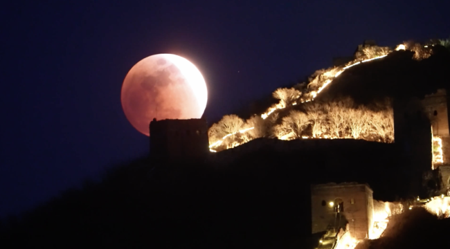 月全食长城同框意境拉满 红月升起震撼美景