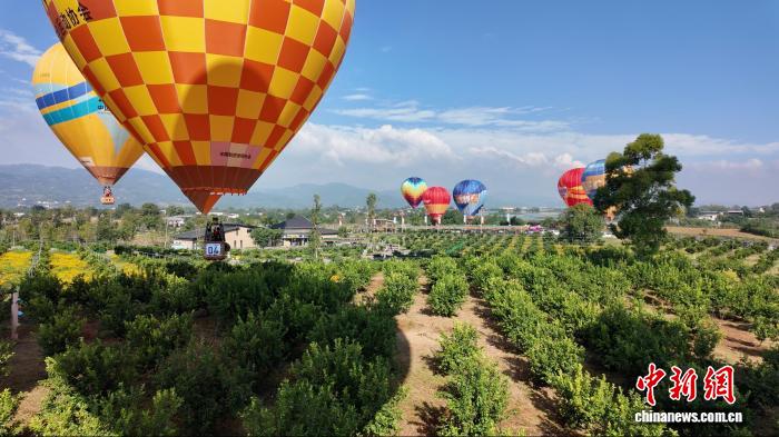中新网成都10月15日电 (王利文 邹立杨)2025年全国热气球精英赛(四川金堂站)暨成都市低空文旅消费季活动15日在成都金堂启幕。在主会场天府橘乡旅游景区,30支参赛队伍依次完成点火、充气,色彩斑斓的热气球依次腾空,