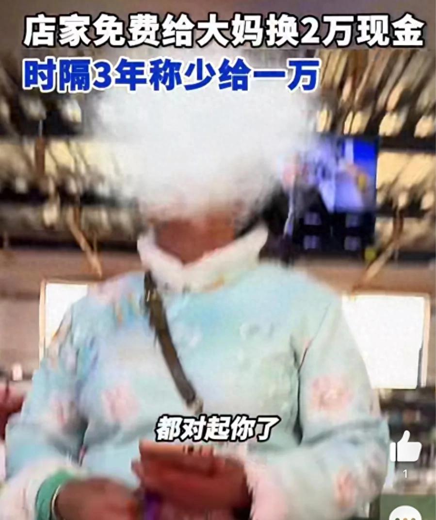 大妈换2万现金3年后称少给一万!