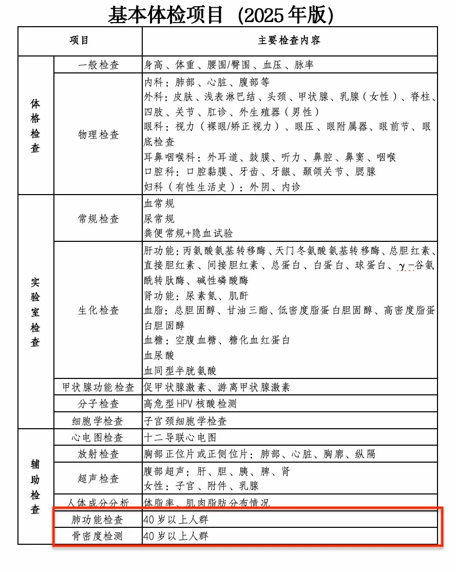 很多人每年体检都在纠结:体检项目一大堆,到底该查什么?随着年龄增加,器官也在衰老,查多了怕浪费钱,查少了又怕漏掉重点……国家卫健委今年10月底发布了《成人健康体检项目推荐指引(2025年版)》,明确推荐了40岁