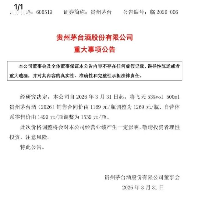 3月30日晚,贵州茅台发布公告。